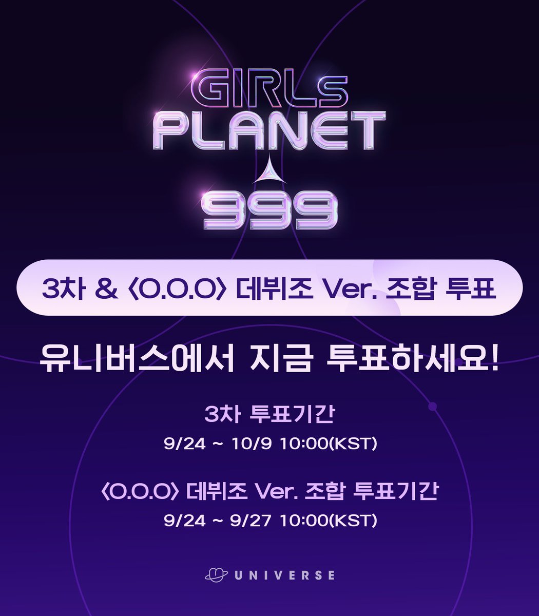 Universe Official On Twitter Girlsplanet999 걸스플래닛999 3차 투표와 O O O 데뷔조 Ver 조합 투표가 시작되었습니다 지금 바로 유니버스 앱에서 투표하세요 지금 투표하러 가기 Https T Co Fptistkmx9 Universe 걸스플래닛999 Girlsplanet999