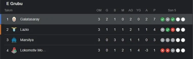 Galatasaray Grupta Kacinci Sirada Uefa Avrupa Ligi E Grubu Galatasaray Puan Durumu Tablosu Detaylari Son Dakika Spor Haberleri