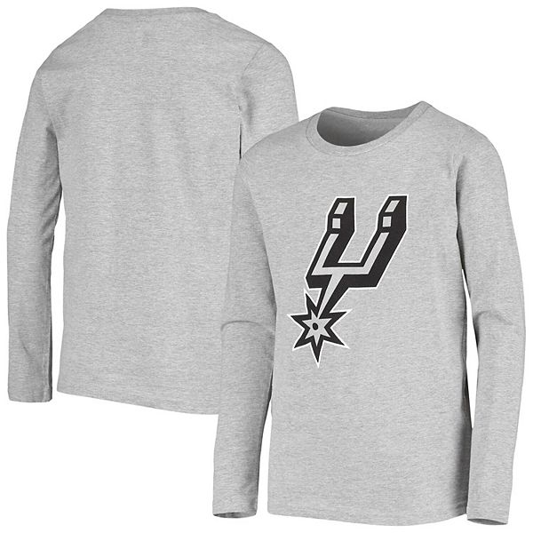 Youth Heathered Gray San Antonio Spurs Primary Logo Long Sleeve T Shirt